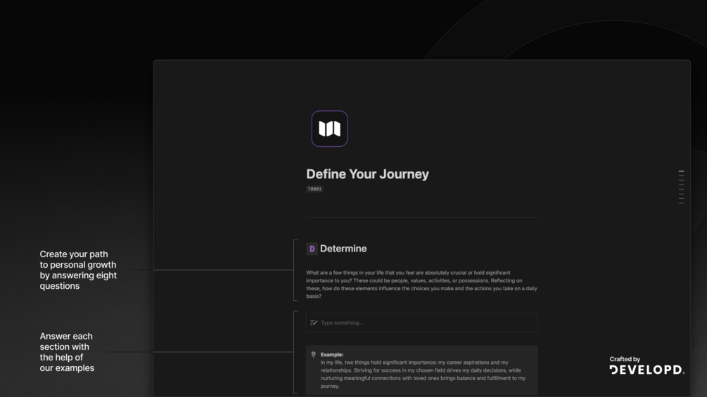 Define Your Journey - is about you creating the roadmap for yourself. It begins by